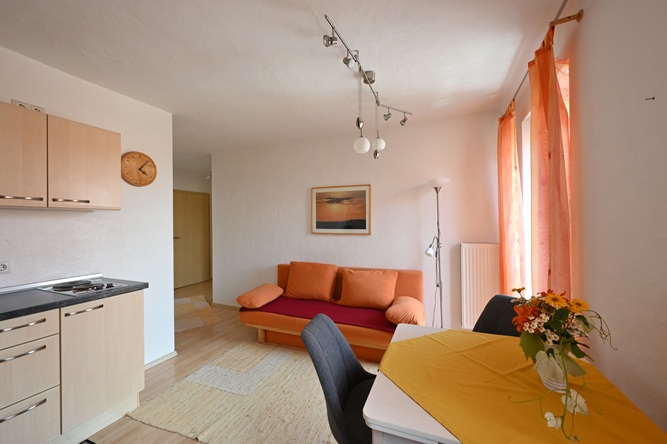 Wohnzimmer mit zusätzlicher Schlafmöglichkeit;